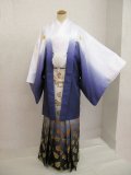 男紋付袴レンタル白紺ぼかし 地模様あり対応身長 約170cm前後<オプション> カラー羽織紐 2,000円(税別)袴は身長をお知らせ頂いた後、縞や柄の中からお選び頂けます。羽織紐は通常白色がセットに含まれます。オプション2,000円(税別)でカラーからお選び頂けます。(袴と羽織紐は下記画像のお色以外からもお選び頂けます。)※帯はお任せ下さい。(着物の色に合わせてコーディネートします。)『カゴに入れる』へ進む前に在庫確認の為、必ずお問合せください。